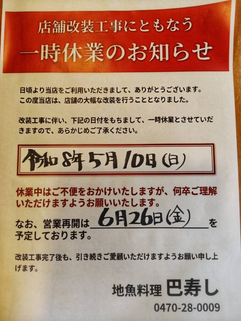 店舗改装工事にともなう一時休業のお知らせ